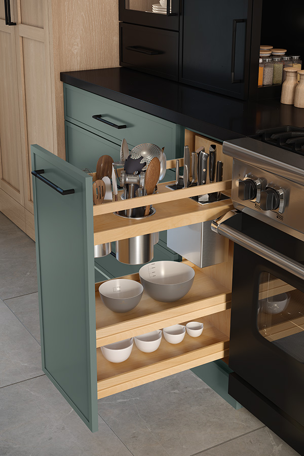 Keep utensils within easy reach while safely storing your sharp knives. Available in natural hardwood and natural walnut.