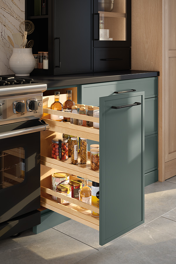 Store spices and oils right by the stove. This pull-out fully extends for complete visibility.